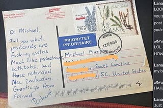 “Hey Nik, how about I send you a postcard?”